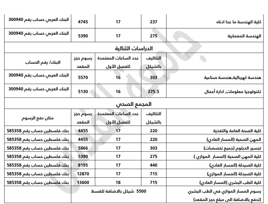 ويصل سعر الساعة الواحدة لساعة الطب البشري 715 شيكل، وساعة طب الأسنان 700 شيكل.