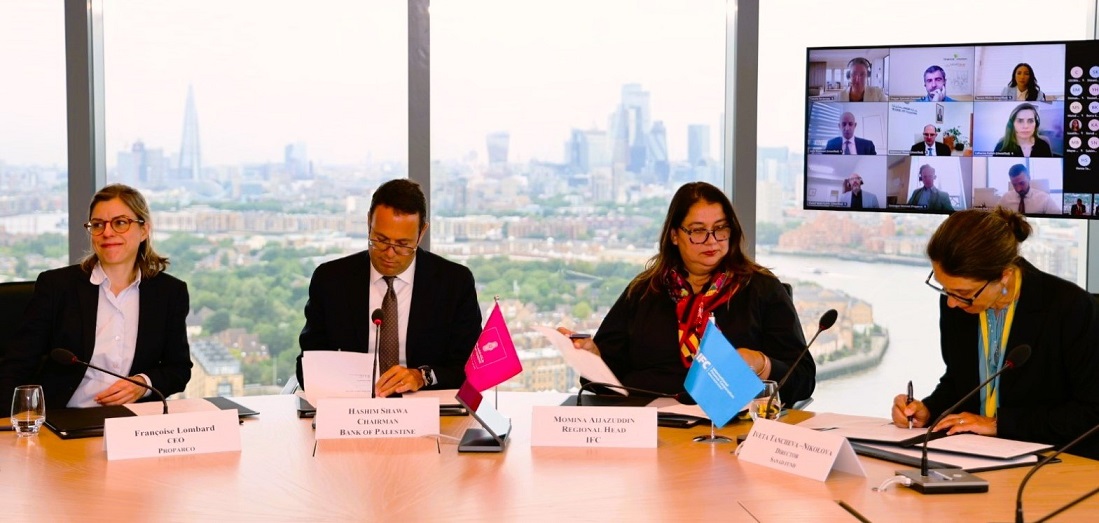 الاقتصادي- بعد الإعلان عن صفقة الاستثمار في أسهم بنك فلسطين مع مؤسسة التمويل الدولية (IFC) والبنك الأوروبي لإعادة الإعمار والتنمية (EBRD) ، وقّع بنك فلسطين اتفاقية لدعم وتوفير تمويل بقيمة 65 مليون دولار أمريكي مع ائتلاف يضم كلاً من مؤسسة التمويل الدولية IFC ، ومؤسسة بروباركو PROPARCO- الذراع الاستثماري للوكالة الفرنسية للتنمية، وصندوق "سند" لتمويل المشاريع متناهية الصغر والصغيرة والمتوسطة.