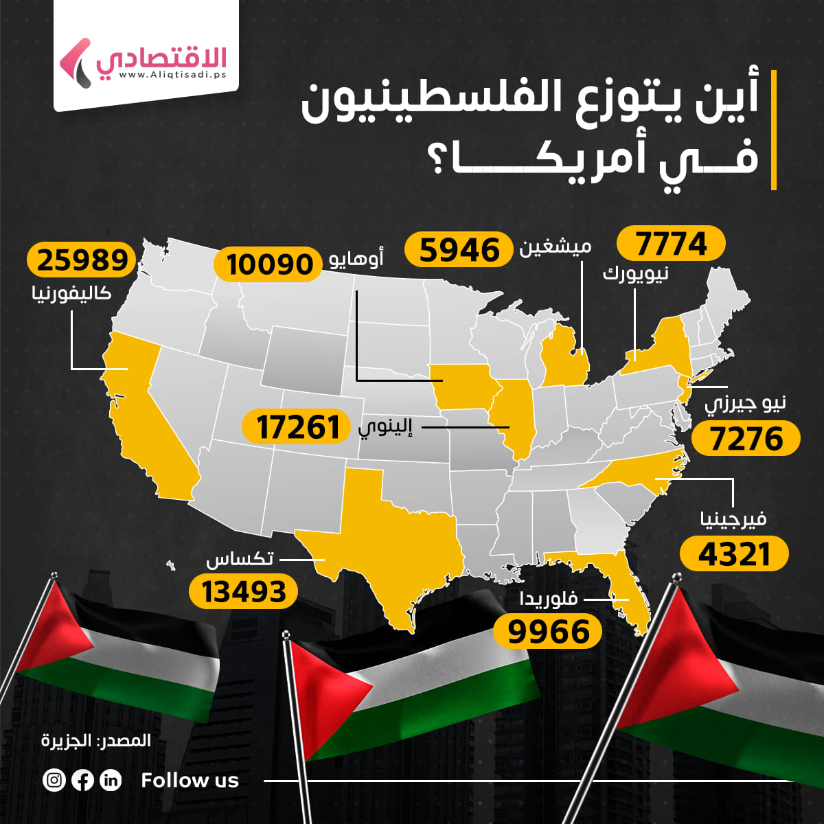 بالأرقام.. توزيع الفلسطينيين في الولايات المتحدة