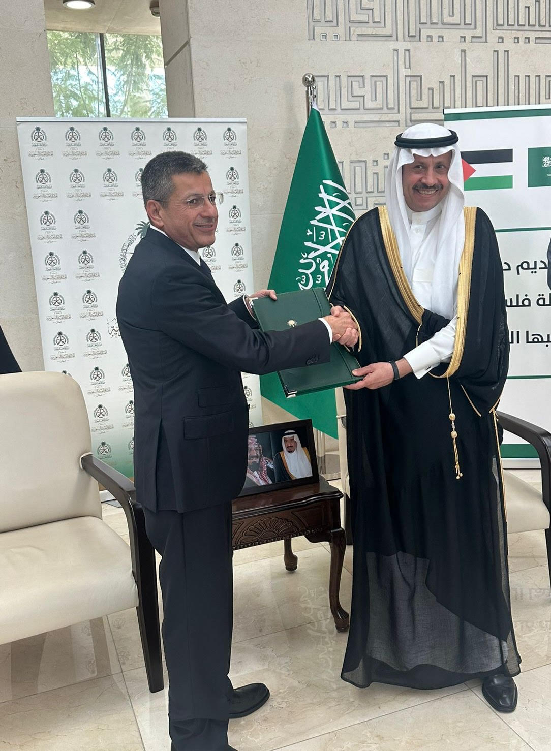 وجرى التسليم في مقر سفارة المملكة العربية السعودية بعمان، خلال لقاء وزير المالية الفلسطيني مع سفير المملكة العربية السعودية غير المقيم لدى دولة فلسطين، القنصل العام في القدس نايف بن بندر السديري.