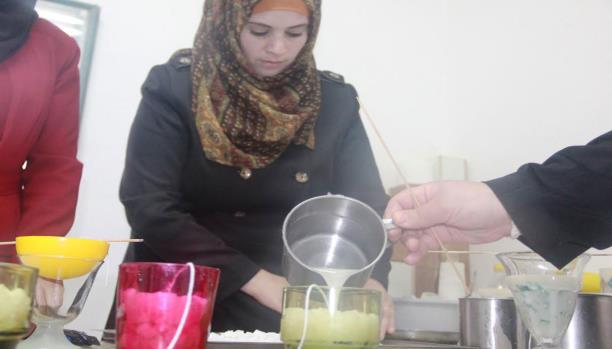 أضافت منال: "جمعنا أنفسنا وفكرنا كيف نطور المشروع؟ وكيف نبدأ مشروعاً من تدريب لإنتاج؟ فاستأجرنا هذا المكان وبدأنا بأدوات بسيطة. من شهر فبراير/شباط، ونحن نعمل على مشروع تصنيع الشموع، وأصبح منتجاً مرغوباً".