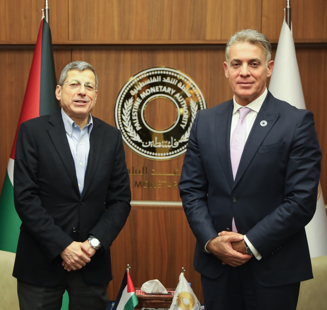 وأكد المحافظ شنار، لدى استقباله في مقر سلطة النقد الوزير البيطار، أن سلطة النقد ستواصل جهودها لضمان تعزيز الاستقرار المالي والنقدي، واستكمال مسار التحول الرقمي، ومحاولة استعادة الخدمات المصرفية في قطاع غزة بما يخفف من معاناة الأهل هناك.