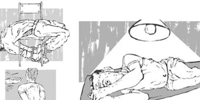 حسب تقرير "بتسيلم" يتم تقييد المعتقلين الفلسطينيين وربطهم على "كرسي" يمنعهم من الحركة ولو بحدها الادنى.