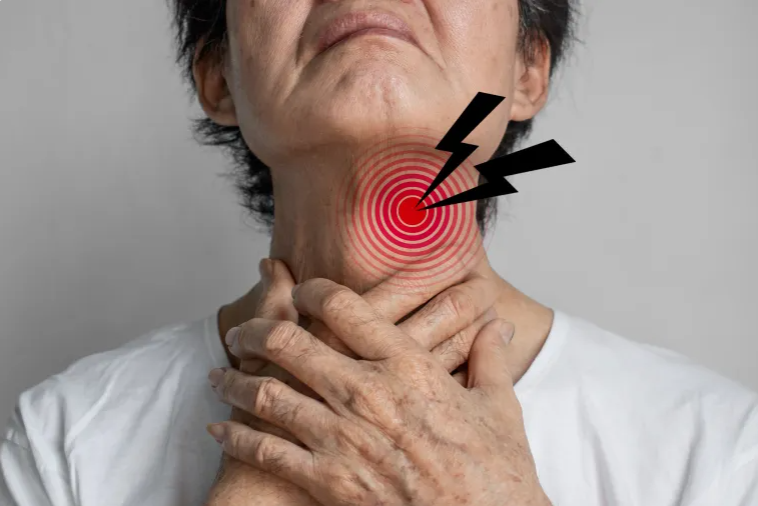 الارتجاع المريئي؛ حيث يرتفع حمض المعدة إلى المريء ويهيج الحنجرة