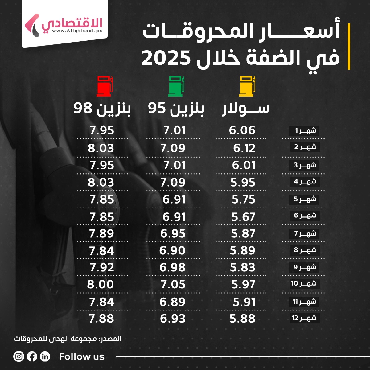 وفي مقابلة حصرية لموقع الاقتصادي، قال نقيب أصحاب المحطات نزار الجعبري إن الضفة الغربية تستهلك أكثر من مليار لتر من المحروقات سنويا بمعدل 90 مليون لتر شهرياً موزعة على 75% سولار (67.5 مليون لتر)، و25% بنزين (22.5 مليون لتر).