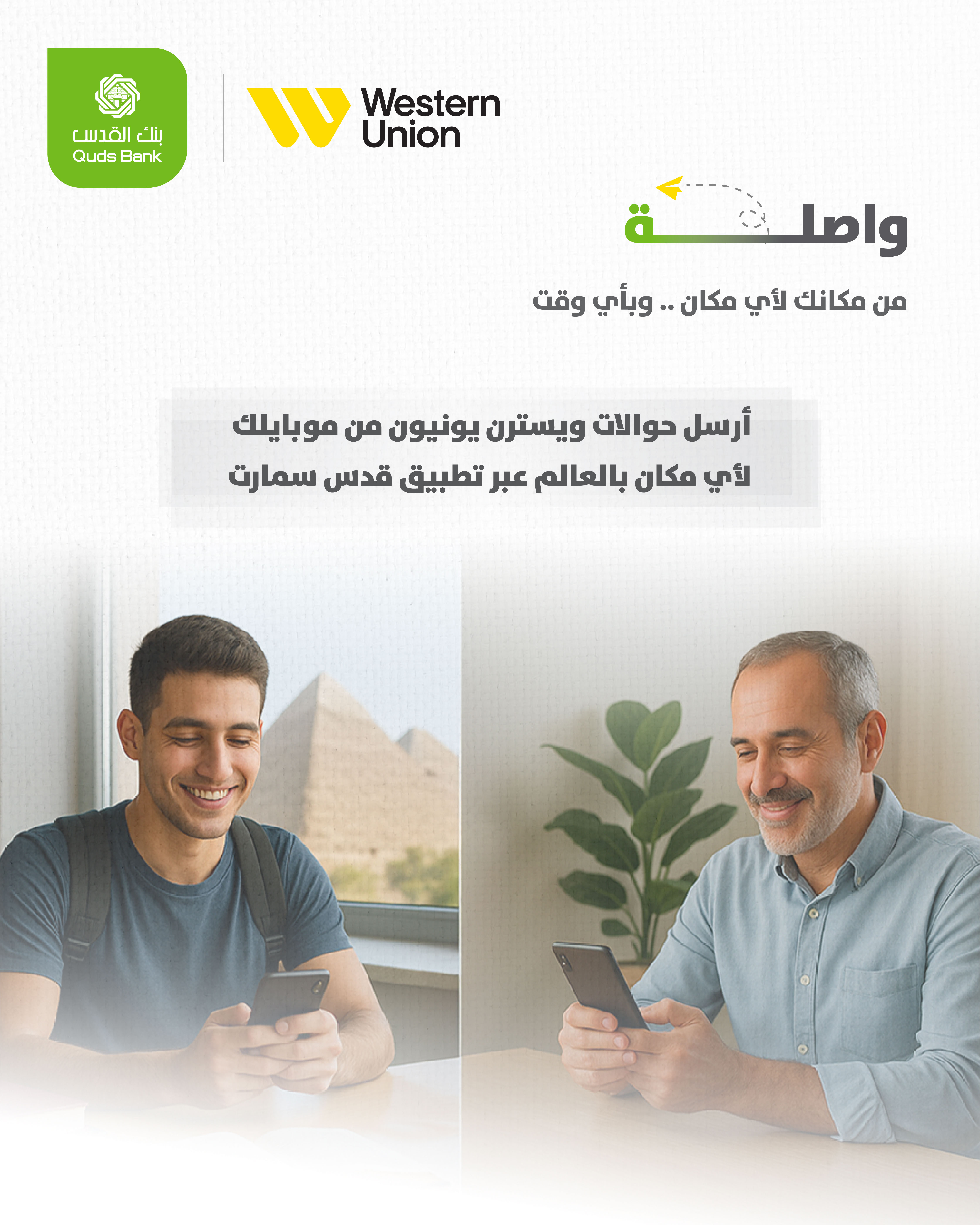 الاقتصادي- في خطوة نوعية تعكس ريادته في مجال التحول الرقمي، أعلن بنك القدس عن إطلاق خدمة تحويل حوالات ويسترن يونيون مباشرة عبر تطبيق "قدس سمارت"، في سابقة تُعد الأولى من نوعها على مستوى القطاع المصرفي الفلسطيني، دون الحاجة لزيارة الفروع.