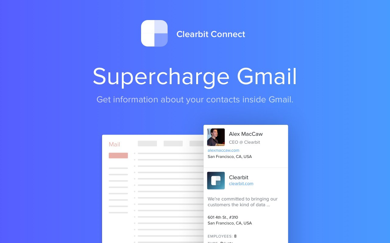 يمكن لمن يرغب بالحصول على تفاصيل مفيدة حول جهات الاتصال التي يراسلها عبر جيميل الاستفادة من إضافة Clearbit المتوفر لمستخدمي متصفح جوجل كروم، والتي تُتيح لهم إمكانية رؤية جميع المعلومات العامّة المتوفّرة حول جهات اتصالهم على جيميل، بالإضافة إلى إمكانية معرفة الشخص صاحب البريد الإلكتروني في حال كان مجهولًا بالنسبة للمستخدم.