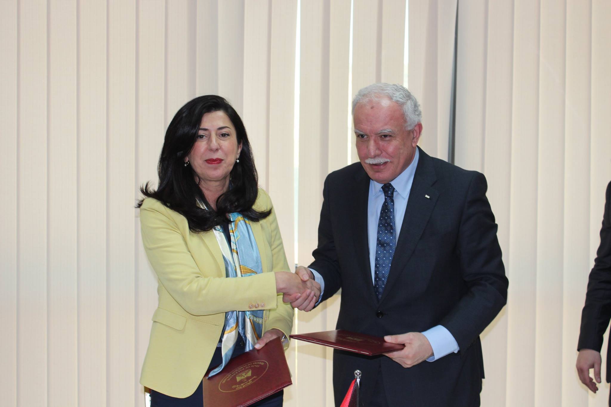 رام الله- الاقتصادي- وقع وزيرا الخارجية د. رياض المالكي والاقتصاد الوطني عبير عودة، امس، اتفاقية تفاهم بشأن إنشاء كادر تجاري فلسطيني في 10 دولة مستهدفة، بهدف الترويج للمنتجات الفلسطينية في الأسواق الخارجية واستقطاب استثمارات خارجية إلى دولة فلسطين.