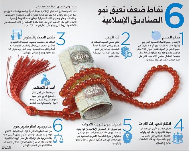 لا يتعدى حجم الأصول الإسلامية التي يتم إدارتها حول العالم 50 مليار دولار أي 6 ٪ تقريباً من حجم الطلب في السوق المقدّر بحوالي 950 مليار دولار. ويعزى وجود تلك الفجوة إلى قلة توفر منتجات استثمار إسلامي ذات حجم مناسب وقادرة على تلبية الطلب الكبير على تلك المنتجات.