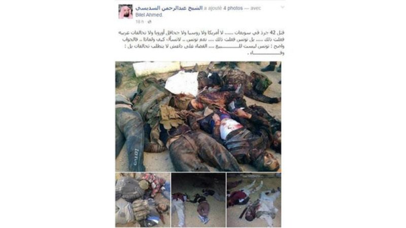 وكان ناشطون قد تداولوا بكثرة عبر صفحات مواقع التواصل الاجتماعي في تونس "فيسبوك" تدوينة مزيفة لإمام وخطيب الحرم المكي الدكتور عبد الرحمن السديس في صفحة نسبت له على "فيسبوك" يشيد فيها بنجاح الجيش وقوات الأمن التونسية في قتل 42 إرهابيا في بن قردان التي تعرضت لهجوم إرهابي فجر الاثنين.