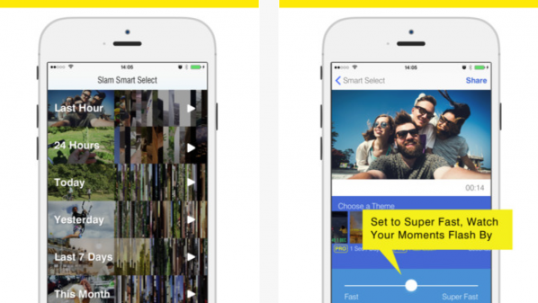 تطبيق VideoSlam المتوفّر لمستخدمي أجهزة آيفون عبر متجر آب ستور يُتيح للمستخدم إمكانية تجميع الصّور ومقاطع الفيديو في شريط فيديو واحد مختصر وسريع، بحيث يتم جمع أجمل اللحظات بأقل جهد ممكن.