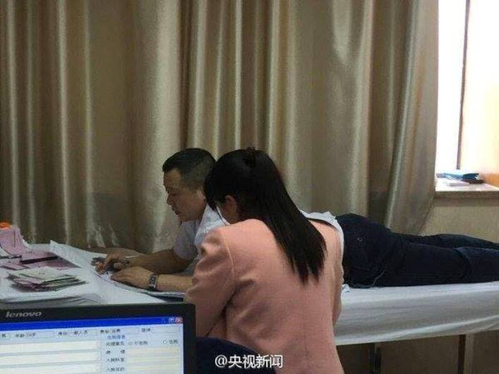 يستقبل طبيب صيني مرضاه وهو مستلق على بطنه بسبب إصابة في ظهره بمعدل 90 مريضاً كل يوم