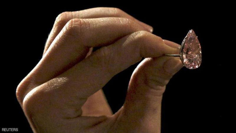 والماسة القرمزية التي تتخذ شكل حبة كمثرى وتصفها دار مزادات سوذبي بأنها "نادرة للغاية واستثنائية"، تزن 15.38 قيراط.
