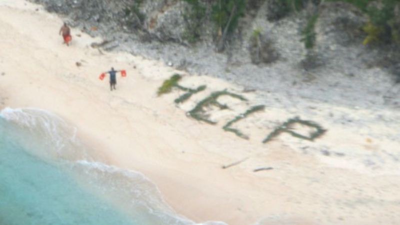 وتمكن الرجال من بلوغ جزيرة نائية، وهناك رسموا باستخدام سعف النخيل كلمة "النجدة" بالإنجليزية.