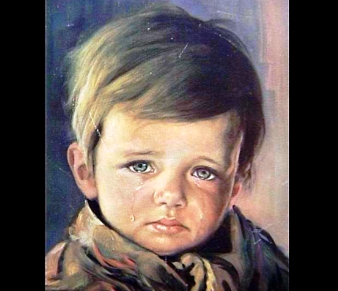 فى عام 1998 كانت توجد صورة فتاة تبكي عثر عليها سليمة في منزل محترق في (دبلن) فالبعض يتسائل هل الطفل الموجود في اللوحة كان شخصا حقيقيا؟ من رسم هذه اللوحة ؟ قال أنه رأى فتى أثناء تجوله وعلى وجهه الكثير من الحزن اكتشف بعد ذلك أن هذا الفتى هرب بعد رؤية والديه يموتون في الحريق. فبدا بعد ذلك برسم اللوحات التي بها الحزن ولكن بعد فترة من رسم هذه اللوحات احترق في ظروف غامضة واكتشف بعد ذلك أن من الممكن أن تكون هذه اللوحة مسببة للحرائق الغامضة.