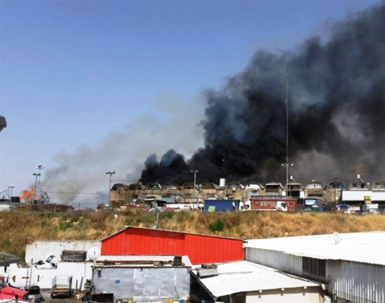 وقالت المصادر ان الحريق امتد الى مبنى السوق وحرشا قريبا منه فيما تعمل 5 فرق اطفاء على اخماد النيران والسيطرة عليها .