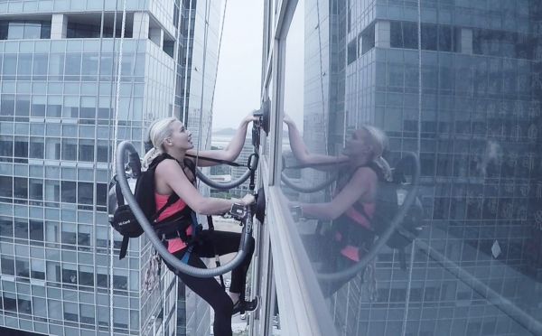 تسلقت سييرا بلير-كويل برج المكاتب في كوريا الجنوبية المكون من 33 طابقاً وهي تحمل على ظهرها فقط المكنستين اللاسلكيتين، واللتين وفرتا قوة شفط كافية لحمل وزنها أثناء تسلقها البرج بأناة حتى قمته. وأكملت سييرا التسلق بأقل من 30 دقيقة، ولم تتوقف سوى مرة واحدة لتبديل المكنستين باثنتين جديدتين، لتنجح في تحقيق أول إنجازٍ من نوعه.