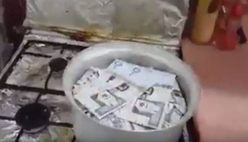 وفقًا لما أظهره مقطع الفيديو، استعرض الرجل عصيرًا مضادًا للأرق ومهدئًا للأعصاب، والمكون من أوراق المال الموضوعة في كوب زجاجي، ثم التفت نحو وعاء طهي ممتلئ بالأموال أيضًا، وعرفه بطبخة الكبسة المعالجة لأزمات القلب وصعوبة التنفس.وأخيرًا الحلوى بالفرن كانت عبارة عن أوراق مالية ملتفة.