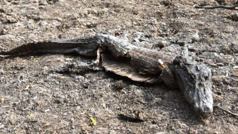 نفق تمساحان، على الأقل، فيما تواجه عشرات التماسيح في صحراء باراغواي مغبة النفوق، جراء جفاف في المنطقة نجم عن توقف تدفق المياه من نهر بيلكومايو.