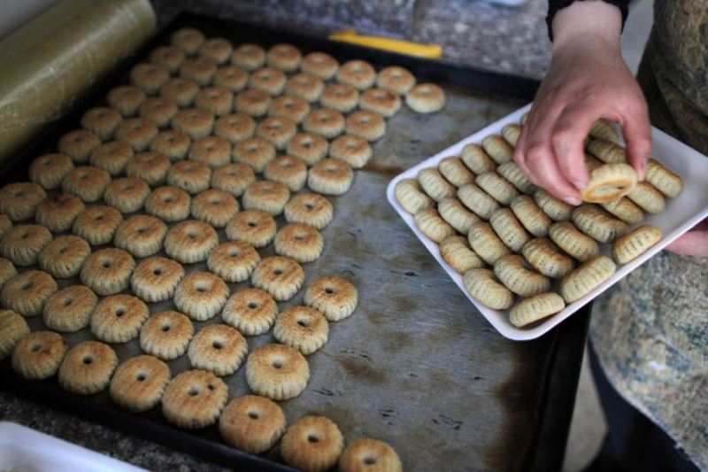 فما إن تطأ أقدامك "الحي الإماراتي" غرب مدينة خان يونس جنوب قطاع غزة، حتى تجذبك رائحة الكعك الفواحة من منزل أم العبد كلاب (50 عامًا) وما إن تُلقي ببصرك داخله حتى تجد نسوة يعملون كخلية نحل بلا كلل ولا ملل من أجل إنجاز طلبات الزبائن من الكعك والمعمول قُبيل عيد الفطر.