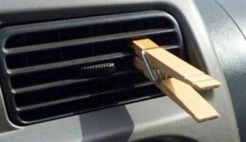 كل ما تحتاجه هو ملقط خشبي من أي حجم كان مع أي زيت أساسي طبيعي تحب رائحته مثل زيت اللافندر، زيت جوز الهند وغيرهما من الزيوت العطرية. قم بسكب بعض القطرات على الملقط، واعمد إلى تثبيت الأخير على فتحات المكيف كما في الصورة أعلاه.