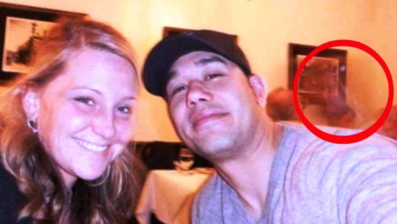 السيلفي التي أحدثت بلبلة بين مستخدمي مواقع التواصل الإجتماعي وهي تظهر فتاة محجبة مع زوجها وهما مبتسمان لكاميرا هاتفهما، غير منتبهين لانعكاس وجه المرأة خلفهما. فبينما يبدو انعكاس الرجل طبيعيا، يعكس الزجاج صورة وجه المرأة وهي تنظر للخلف!