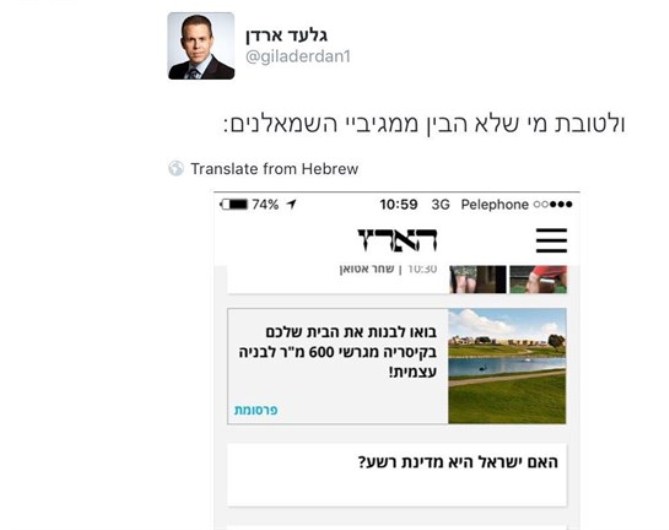 وبدلا من أن يخجل وزراء اسرائيل من هذا التقرير، شكك "غلعاد اردان" وزير الامن الداخلي الاسرائيلي بالصحيفة وكتب على صفحته على تويتر: هل صحيفة هآرتس لا سامية؟