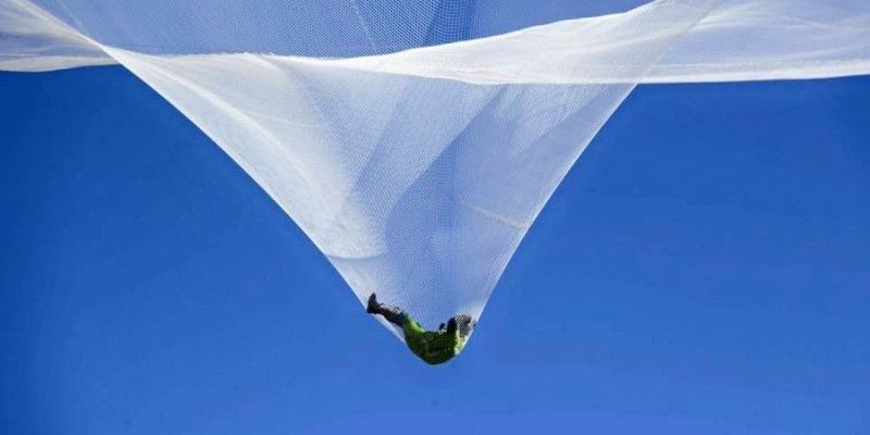 ورافق 3 مظليين أيكنز، البالغ من العمر 42 عاما، الذي انهى قفزته المجنونة على شبكة ضخمة دون أن يتعرض لأي إصابات، حسب ما ذكر متحدث باسم المغامر الأميركي.