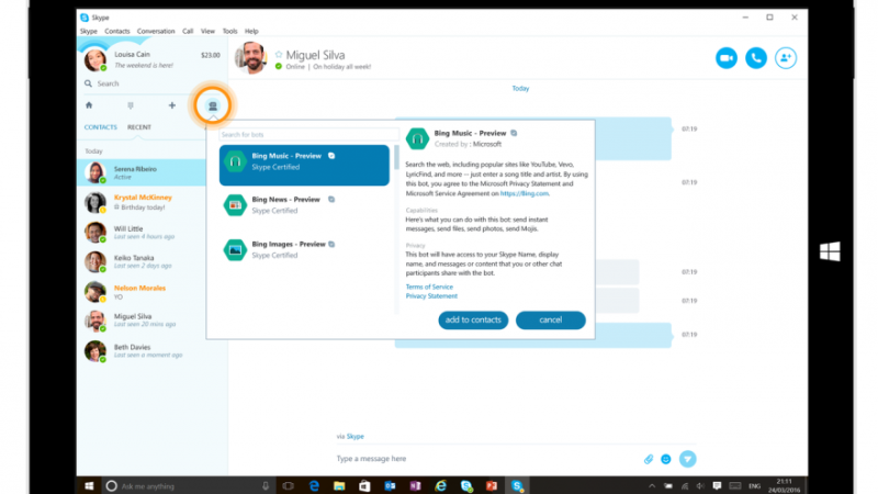 مايكروسوفت تضيف خمس روبوتات دردشة إلكترونية لتطبيق سكايب