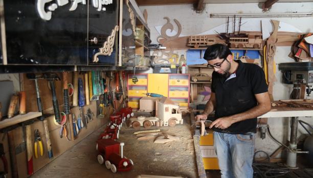 تلك الأفكار التي ما انفكت تراود عقله منذ بدء عمله عام 2007 مع شقيقه داخل منجرة الموبيليا الخاصة بهم، حتى بدأ بتنفيذ أولى الخطوات، عبر صناعة مجسم فني لمقلمة أطفال، تحوى زوايا عديدة للقرطاسية، تلاها صناعة مجموعة مجسمات لسيارات وعربات.
