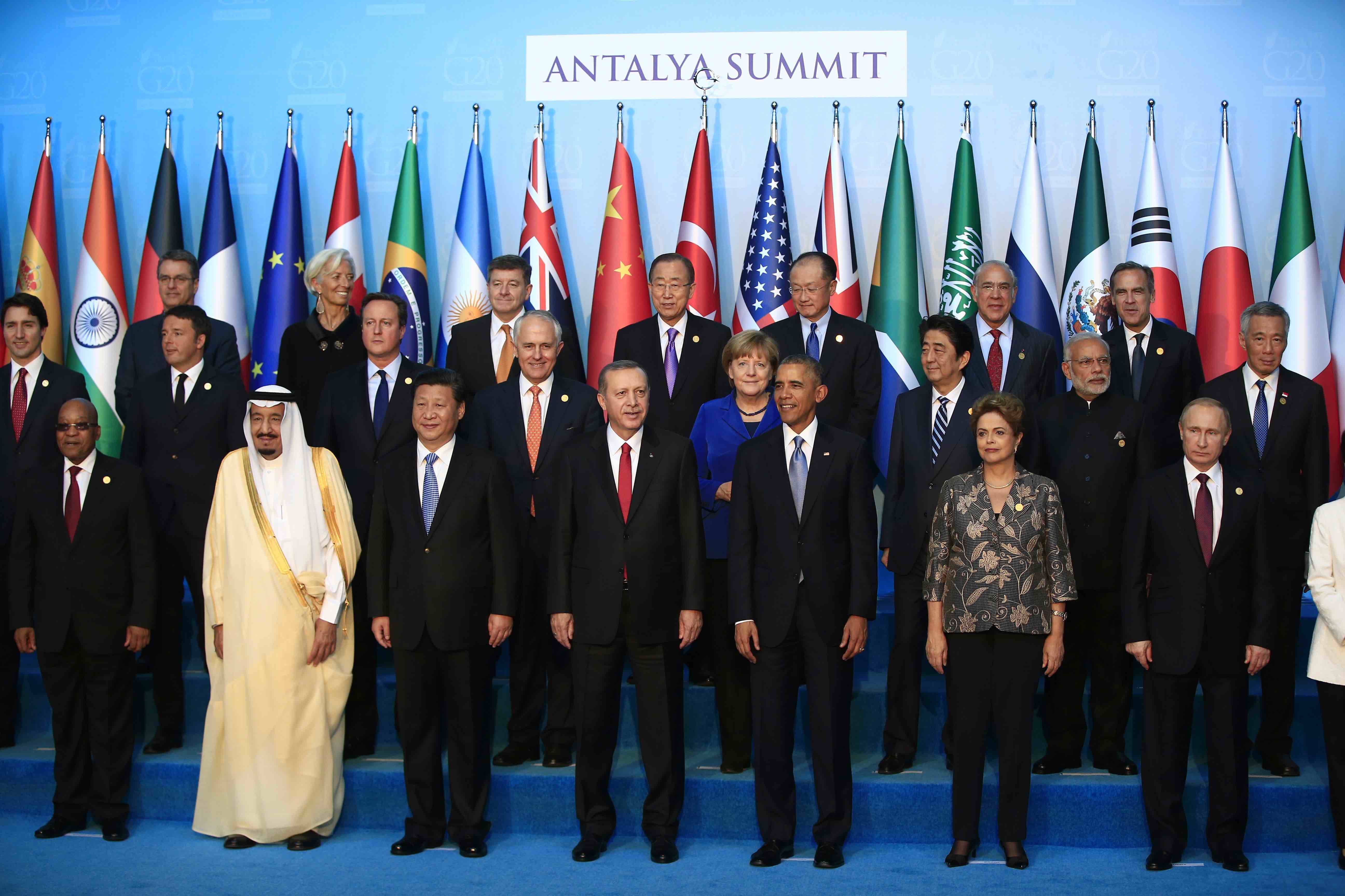 ومن الاحد حتى الاثنين، تبادل قادة مجموعة العشرين والدول الضيوف والمنظمات الدولية الاراء بشأن موضوعات منها الحوكمة الاقتصادية والمالية العالمية الاكثر فعالية والتجارة والاستثمار الدوليان النشطان والتنمية الشاملة والمترابطة.