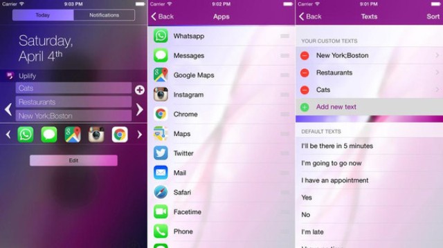 تطبيق Uplify المتوفر على متجر آبل للتطبيقات يُتيح لمستخدميه إمكانية إضافة التطبيقات المهمة لهم مثل "واتس آب"، و"إنستاغرام"، و"تويتر"، و"الرسائل"، أو أي تطبيق آخر، إلى قائمة مركز التنبيهات التي يمكن الوصول إليها عندما تكون شاشة الجهاز مقفلة، وبالتالي الوصول إلى التطبيقات المهمة بسرعة ودون الحاجة لفتح القفل.