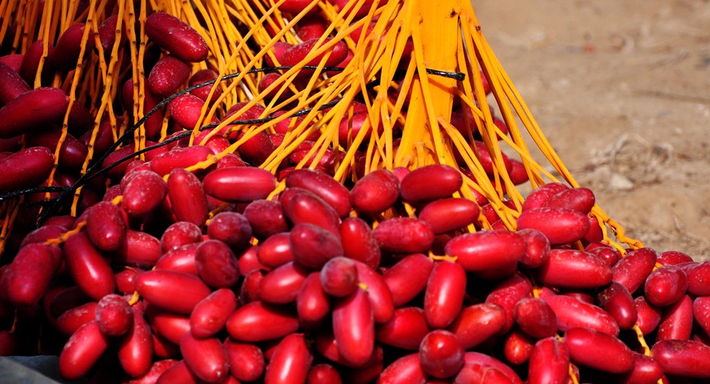 غزة - الاقتصادي - (الايام) تجتذب قطوف البلح الحمراء المكتنزة أعين المارة العابرين على الطريق الساحلية، التي تتوسط منطقة المواصي الساحلية غرب مدينتي رفح وخان يونس، لدرجة يندفع بعضهم إلى المزارع التي بدأ ملاكها بجنيها، ويتوجهون لشراء القطوف، خاصة «بلح حياني»، الذي تشتهر به تلك المنطقة.