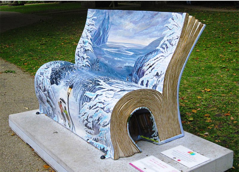 مقعد على شكل كتاب رواية الأسد، الساحرة وخزانة الملابس، في لندن