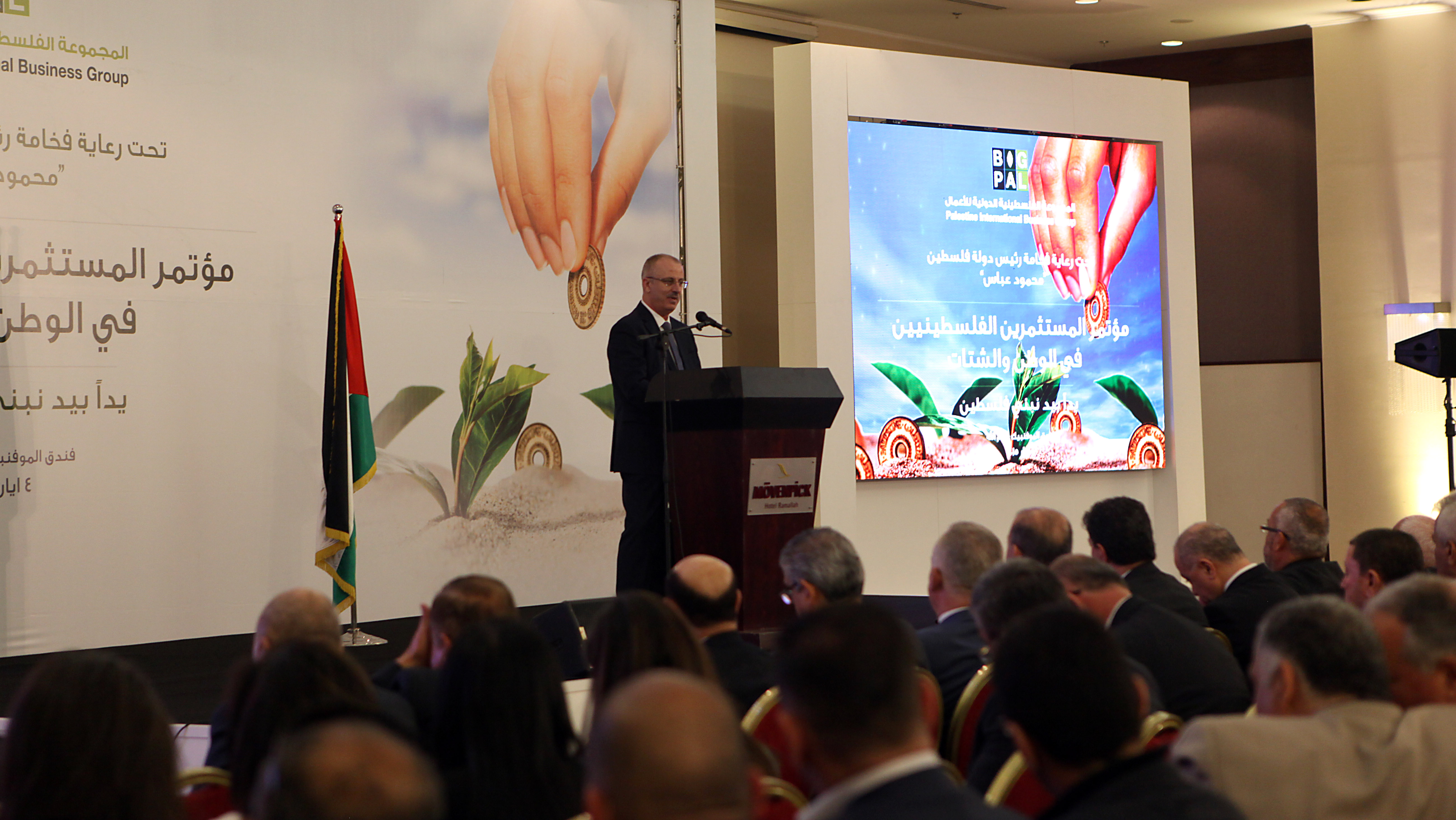 جاء ذلك خلال كلمته في مؤتمر المستثمرين الفلسطينيين في الوطن والشتات، اليوم الاثنين برام الله، والمنظم من قبل المجموعة الفلسطينية الدولية للاعمال، بحضور عدد من الوزراء والمسؤولين والشخصيات الاعتبارية ورجال الاعمال والمستثمرين.