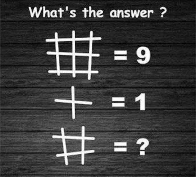 وفي التفاصيل، تظهر في الصورة التي نشرها موقع Playbuzz مربّعات مقترنة ببعضها البعض، وقيل إنّها تُساوي 9 ثمّ قيل إنّ كلّ نقطة التقاء بين خطّين تساوي 1. وطُلب من الناس معرفة كم يُساوي المرّبع الواحد.