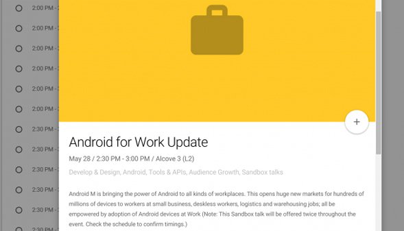 وورد اسم “أندرويد إم” ضمن التعريف بحدث بعنوان “أندرويد للعمل” Android for Work، وهو الحدث الذي تم رفعه من جدول مؤتمر المطورين، دون سبب محدد، عقب ساعات قليلة من كشف جوجل عن الجدول بشكل رسمي يوم الأربعاء.