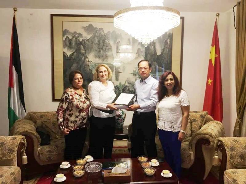 رام الله - الاقتصادي - قام وفد من جمعية عطاء فلسطين الخيرية، برئاسة السيدة رجاء ابو غزالة رئيس مجلس الادارة، والسيدة نجوى خوري المدير التنفيذي، والسيدة ميسر ابو شاويش امينة الصندوق، زيارة لمقر مكتب ممثلية جمهورية الصين الشعبية والاجتماع مع السفير الصيني، حيث تم تسليمه كافة الملفات والتقارير الادارية والمالية الخاصة "بمشروع ضوء الحياة " الخاص بتنفيذ مشروع الانارة بالطاقة الشمسية الذي تم تنفيذه في منطقة خزاعة والذي تم افتتاحه بتاريخ 06/10/2016، واشتملت التقارير كافة تفاصيل عمل وتنفيذ المشروع من بداية المسح الميداني للوحدات السكنية للأسر المستورة ولغاية تنفيذ التركيب والافتتاح.