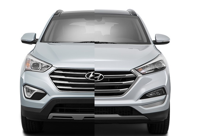 مقارنة بين تصميم الواجهة الامامية لهيونداي سنتافي 2017 و هيونداي توسان 2017 :