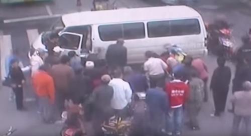 وكالات - الاقتصادي - نجا مسن صيني من الموت بأعجوبة، بعد أن صعدت حافلة صغيرة فوقه وهو ينتظر على دراجته عند أحد التقاطعات المرورية.