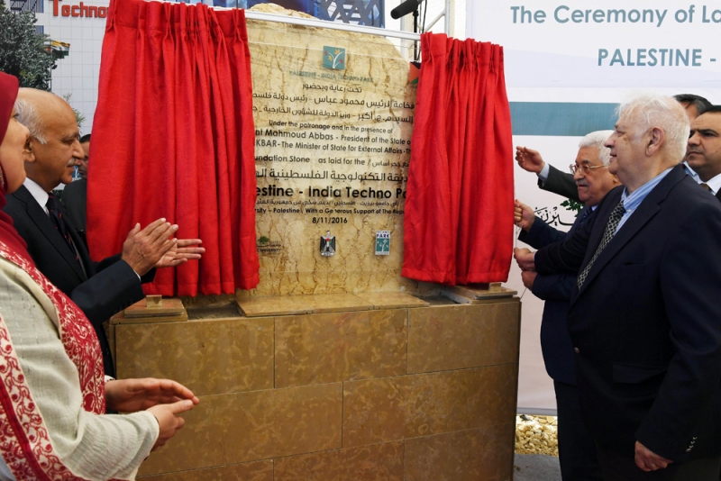 بيرزيت - الاقتصادي - وضع رئيس دولة فلسطين محمود عباس، بمشاركة وزير الدولة للشؤون الخارجية الهندي م.ج. أكبر، اليوم الثلاثاء، حجر الأساس لمشروع الحديقة التكنولوجية الفلسطينية-الهندية في حرم جامعة بيرزيت، بحضور عدد كبير من الأكاديميين ورجال السياسة والاقتصاد.