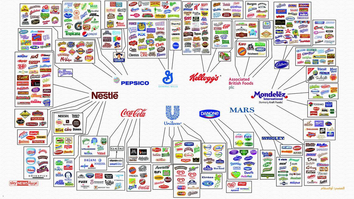 لندن - الاقتصادي - (سكاي نيوز) - منتجات استهلاكية مختلفة ومنتجات صحية وتنظيفية وغذائية مصفوفة على أرفف الأسواق والمحال التجارية ونراها كل يوم ونشتريها في كل الأوقات، كلها تسيطر عليها شركات محدودة تعد على أصابع اليدين، وتحديدا 10 شركات فقط.