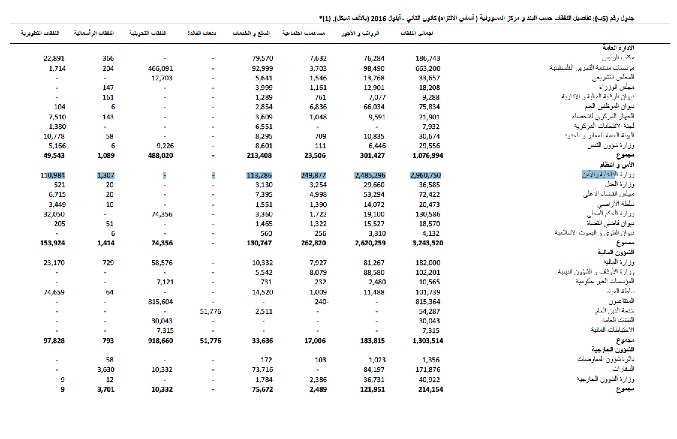 رام الله - متابعة الاقتصادي - محمد عبدالله - صعدت نفقات الأجهزة الأمنية الفلسطينية بنسبة 4.48٪ خلال الشهور التسعة الأولى من العام الجاري مقارنة مع الفترة المناظرة من العام الفائت.