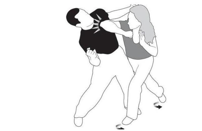 – إن تم سحبك من الخلف، فإلى جانب دعسة من القدم، فيمكن توجيه ضربة كوع إلى وجهه.