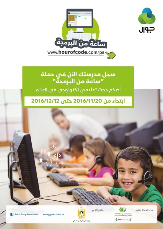 رام الله - الاقتصادي - أطلقت شركة جوال وللسنة الثالثة على التوالي الحملة العالمية " ساعة من البرمجة" بمشاركة اكثر من 180دولة حول العالم، و التي تنفذها مؤسسة مجموعة الاتصالات للتنمية ، الذراع التنموي لمجموعة الاتصالات الفلسطينية بشركاتها ( جوال ، شركة الاتصالات، حضارة، ريتش ، بالميديا)، وستستمر الفعالية لمدة ثلاث أسابيع ابتداءاً من 20/11/2016 وحتى 12/12/2016، وتهدف الحملة الى تحفيز الطلبة والمهتمين من مختلف الاعمار والفئات على مستوى العالم، على التعلم اساسيات ولغات البرمجة بطريقة سهلة وممتعة.