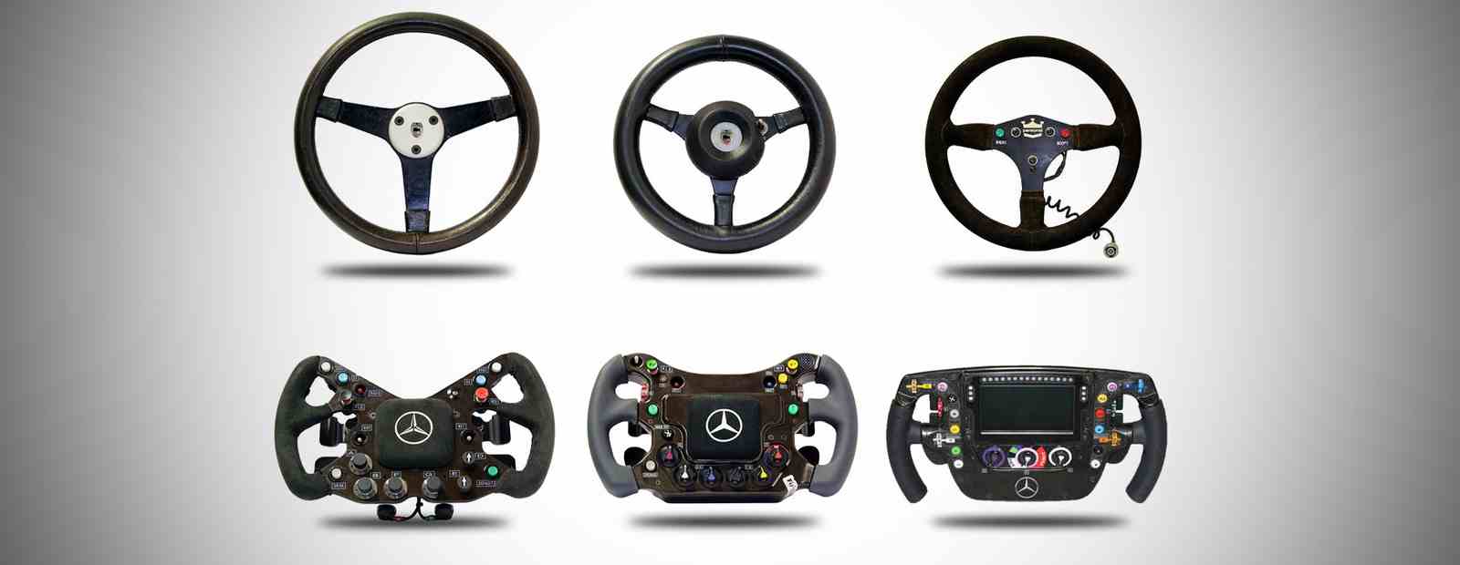 على كل لتأخذوا فكرة عن مدى تقدّم هذه الرياضية ولأي درجة هي معقّدة فسنأخذ نظرة على تطور عجلة مقود الـ F1.