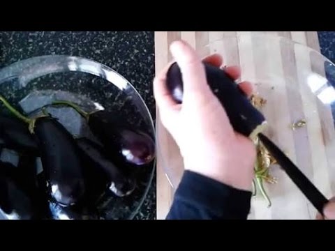 حقق مقطع الفيديو 357 ألف مشاهدة ويعرض امرأة تفرغ الباذنجان باستخدام السكين عن طريق إدخال السكين بين الحشو وطرف الباذنجان وتحركها بشكل دائري ثم يخرج الحشو بكل سهولة.