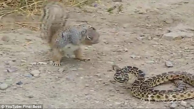 وفي مقطع الفيديو الذي تداولته مواقع التواصل الاجتماعي، يظهر السنجاب وهو يخوض معركة ملحمية مع الأفعى، وللوهلة الأولى يبدو أن لا فرصة له في المعركة، لكنه استطاع أن يلحق أذى كبير بالأفعى التي حاولت افتراسه.