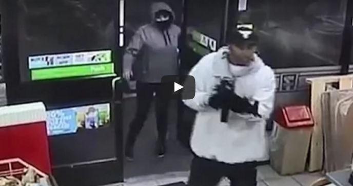 واقتحم اللصان متجر في "فرنسو"، كاليفورنيا، حيث رصدت كاميرات المراقبة لحظة تصويب أحدهما بندقية نحو العامل فيما تقف المرأة التي كانت بصحبته أمام الباب، لكن العامل الشجاع عاجلهما بإطلاق النار نحوهما الامر الذي أجبرهما على الفرار.