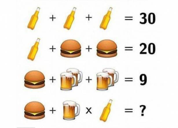 وهذا اللغز هو عبارة عن صورة تحتوي على مجموعة من البيرة والبرغر، وعلى رواد الانترنت معرفة مجموعها.